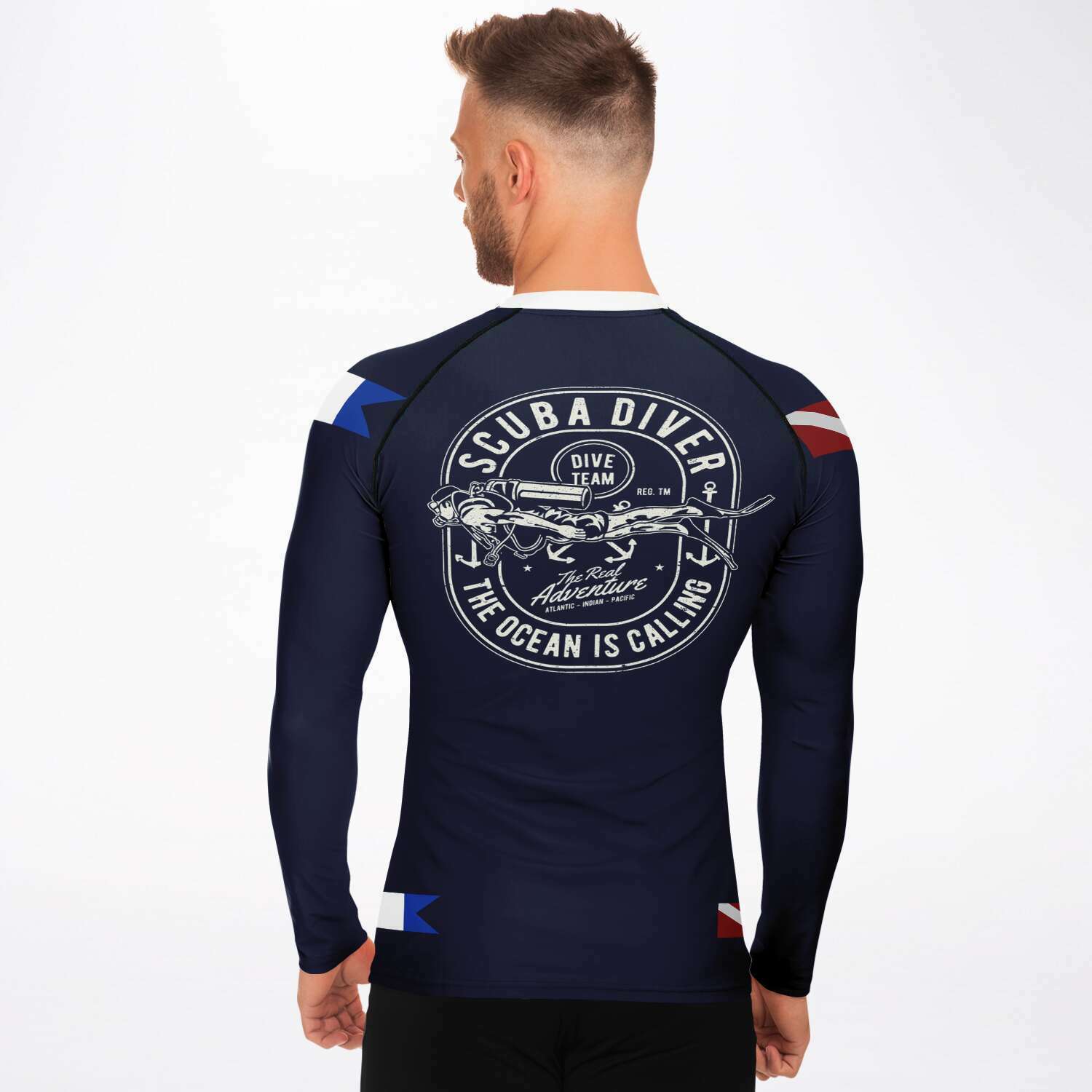 This rashguard is designed for all scuba divers for Diver Bubble team 👌🤿This long sleeve snorkeling rashguard comes with built-in UV protection that keeps you guarded during all-day diving sessions. Even with a snug fit, the stretch material offers complete movement. Dive Team Rashguard. The ocean is calling us 🌊