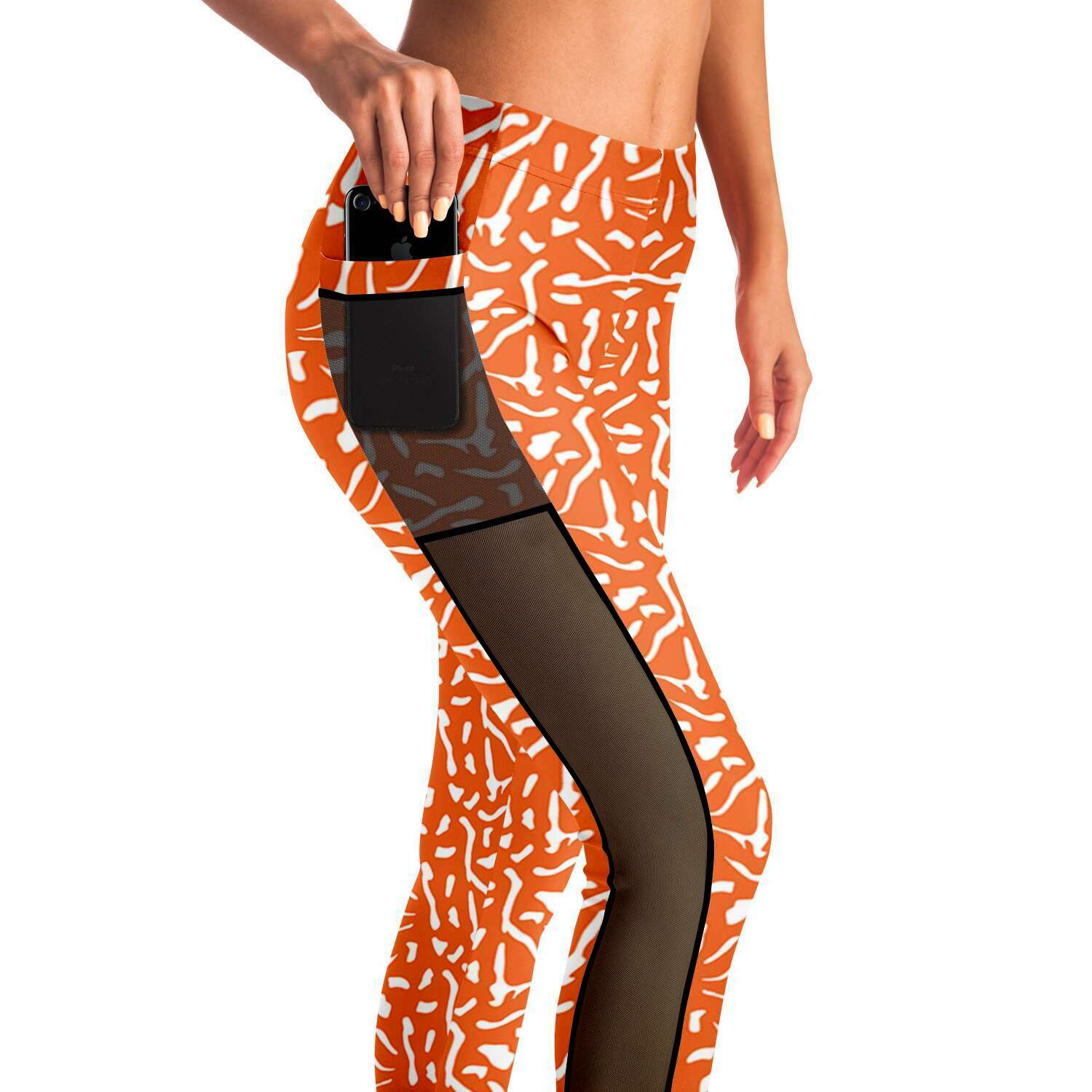 Be ready at all times with this "Mesh Pocket Legging" that lets you hold your phone when you're on the go. They also come with mesh panels on the side for extra comfort when you come back after a diving session. 🟠Crafted from a premium polyester and spandex blend, making them perfect for moments when both style and functionality matter. Our extra soft microfiber fabric with advanced four-way stretch make these a pleasure to wear for all occasions