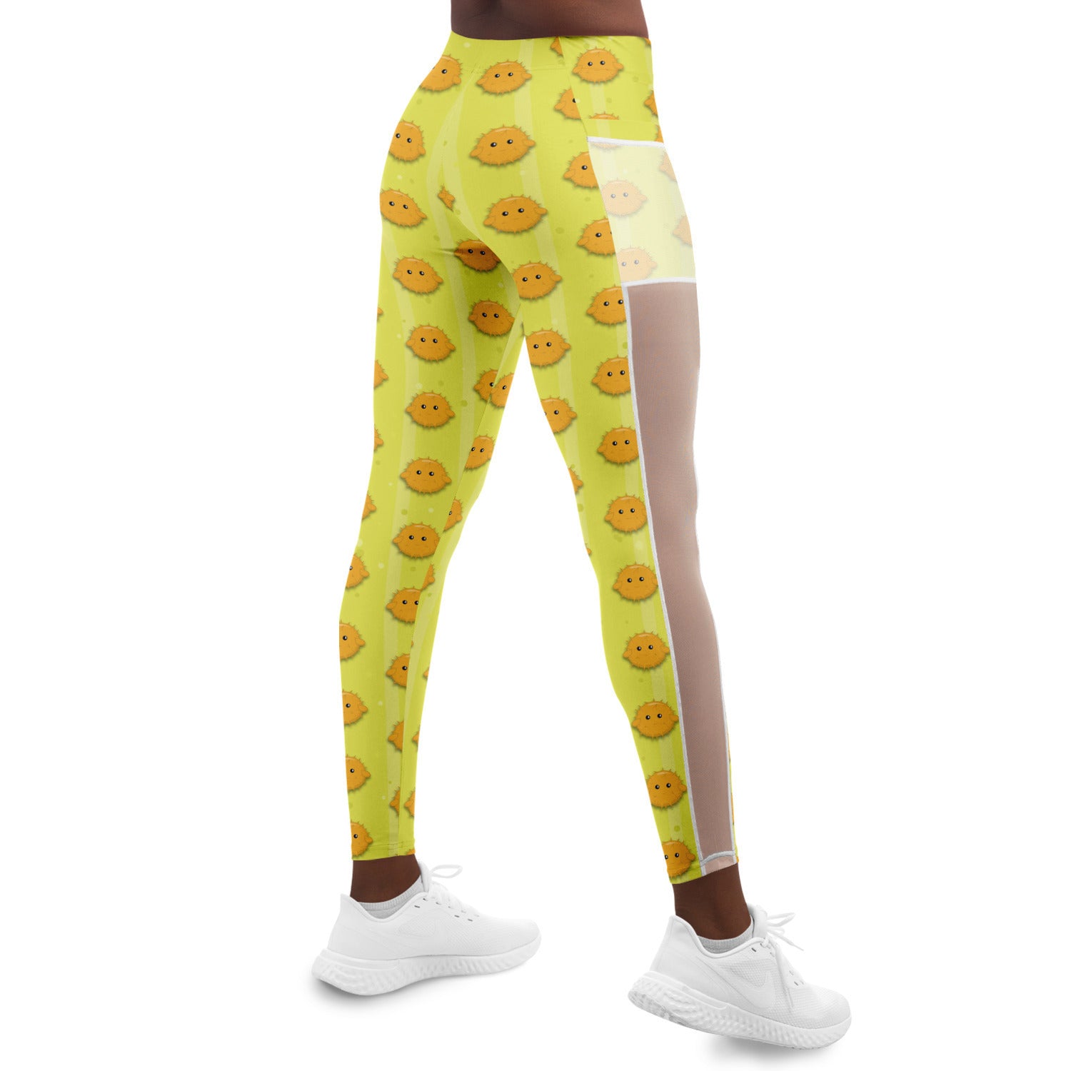 Do you love puffer fish? 🟡⚪Be ready at all times with this "Mesh Pocket Legging" that lets you hold your phone when you're on the go. They also come with mesh panels on the side for extra comfort. Crafted from a premium polyester and spandex blend, making them perfect for moments when both style and functionality matter. Our extra soft microfiber fabric with advanced four-way stretch make these a pleasure to wear for all occasions