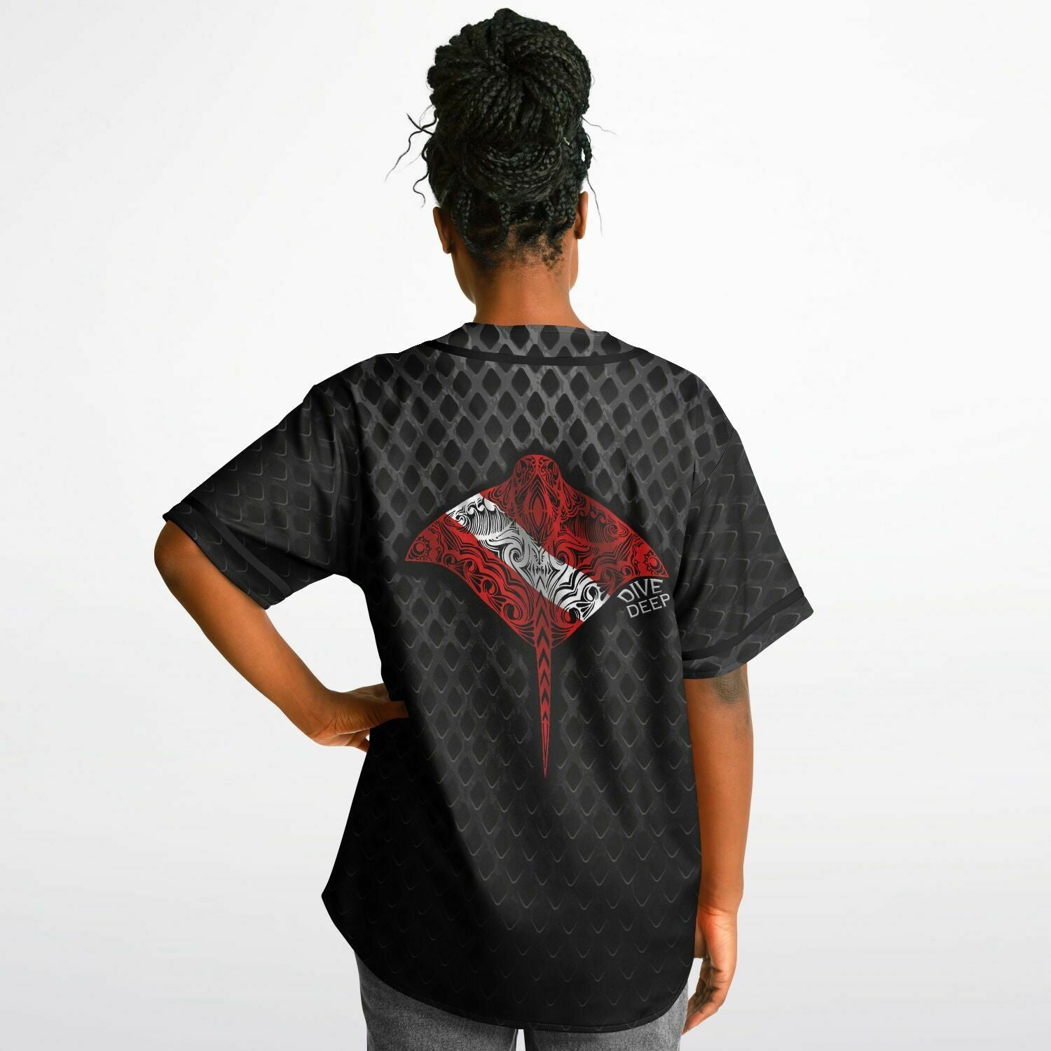 Dive into style with our Reversible Sting Ray Jersey – the perfect choice for scuba divers and water enthusiasts. This innovative jersey offers two unique looks in one, with a stunning sting ray design in red on one side and green on the other. Crafted from 100% recycled polyester, it's a sustainable fashion statement that's built to last. ♻️With custom detailing and ultimate comfort, it's the ideal choice for active days and relaxed weekends. Choose fashion that cares for our planet. Reversible Sting Ray Jersey – style and sustainability in one. Keywords: scuba diver, water enthusiast, reversible sting ray jersey, sustainable fashion, recycled polyester, custom detailing, comfort.👌🤿