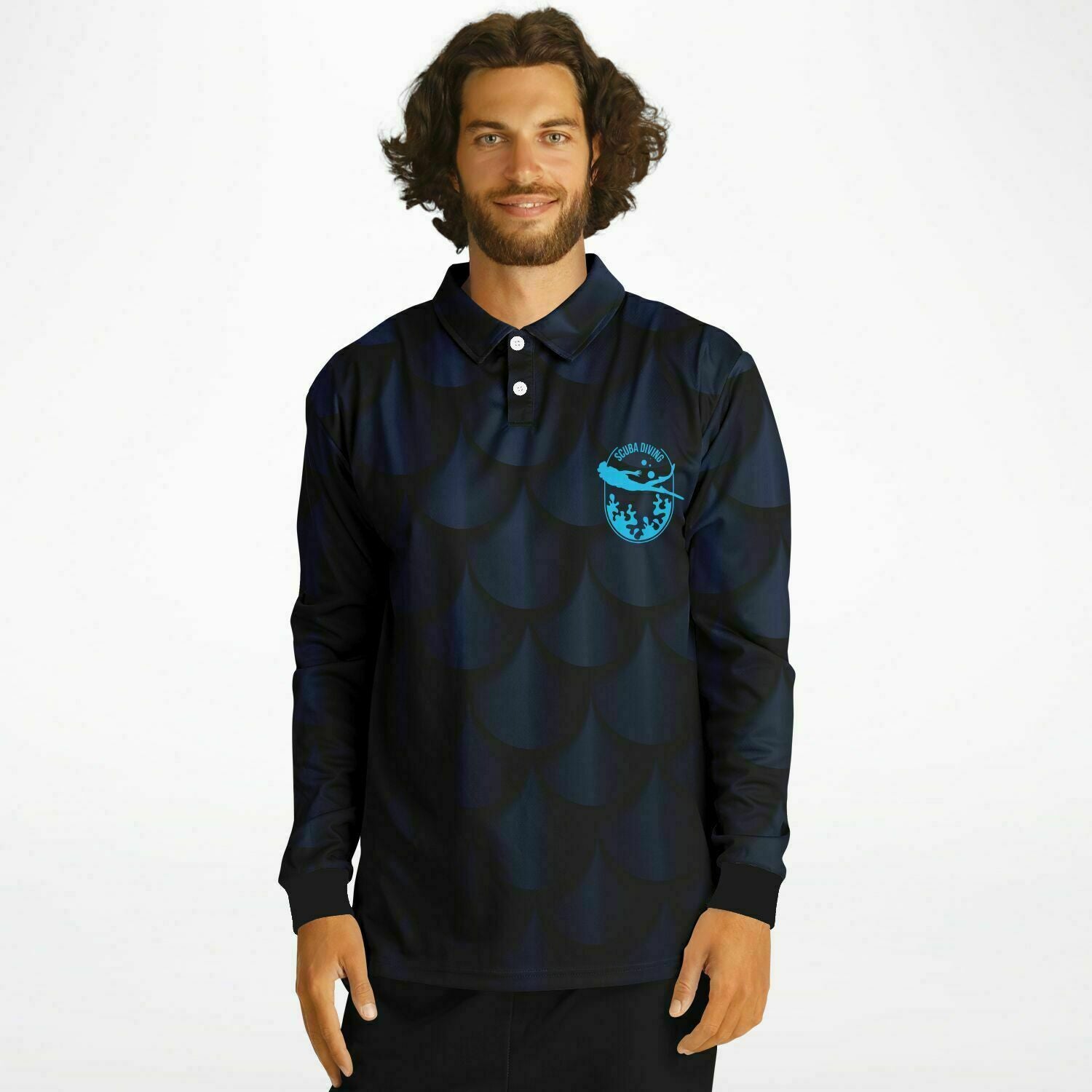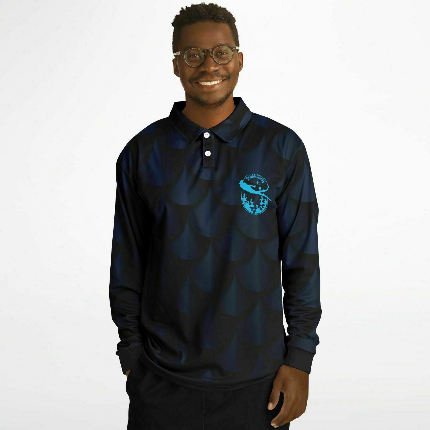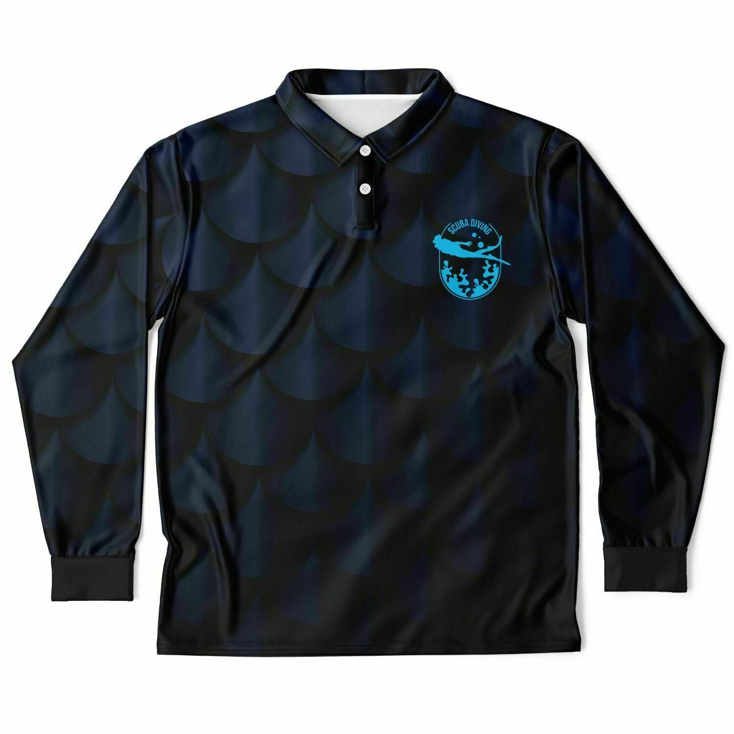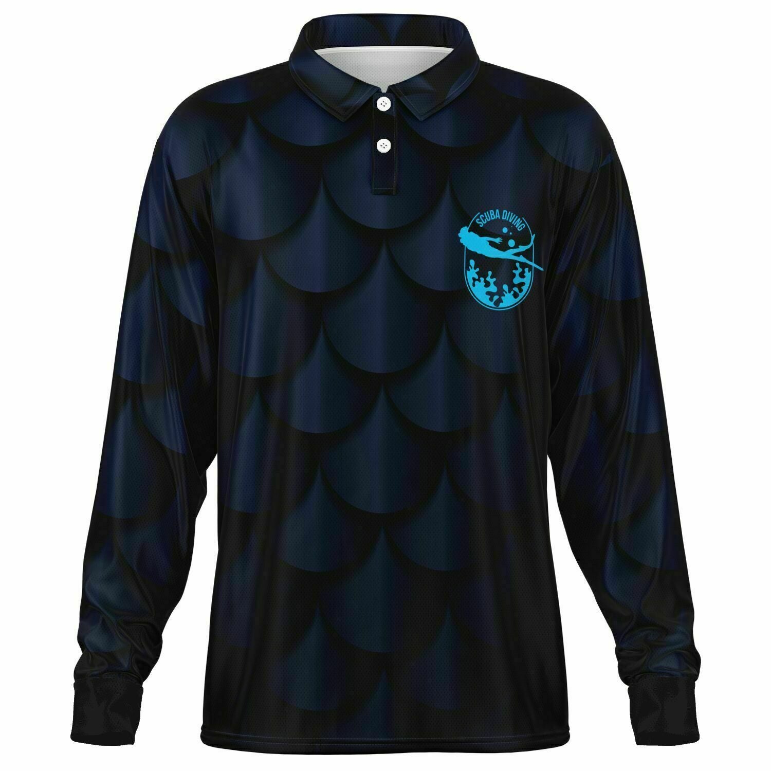 Need a functional long sleeve polo shirt that still looks sharp and stylish? This polo shirt with a scuba diving design is what you need in your wardrobe! It’s perfect for outdoor adventures when you need to protect your skin from the sun’s harsh rays but it’s also suitable for indoor use during cooler months.