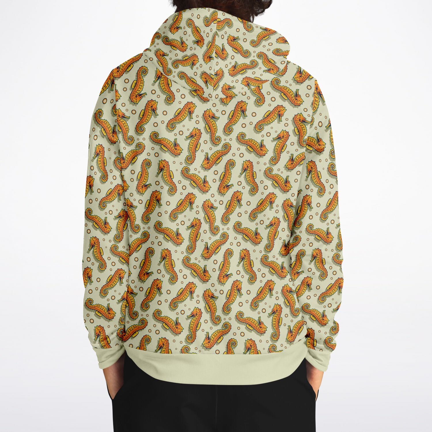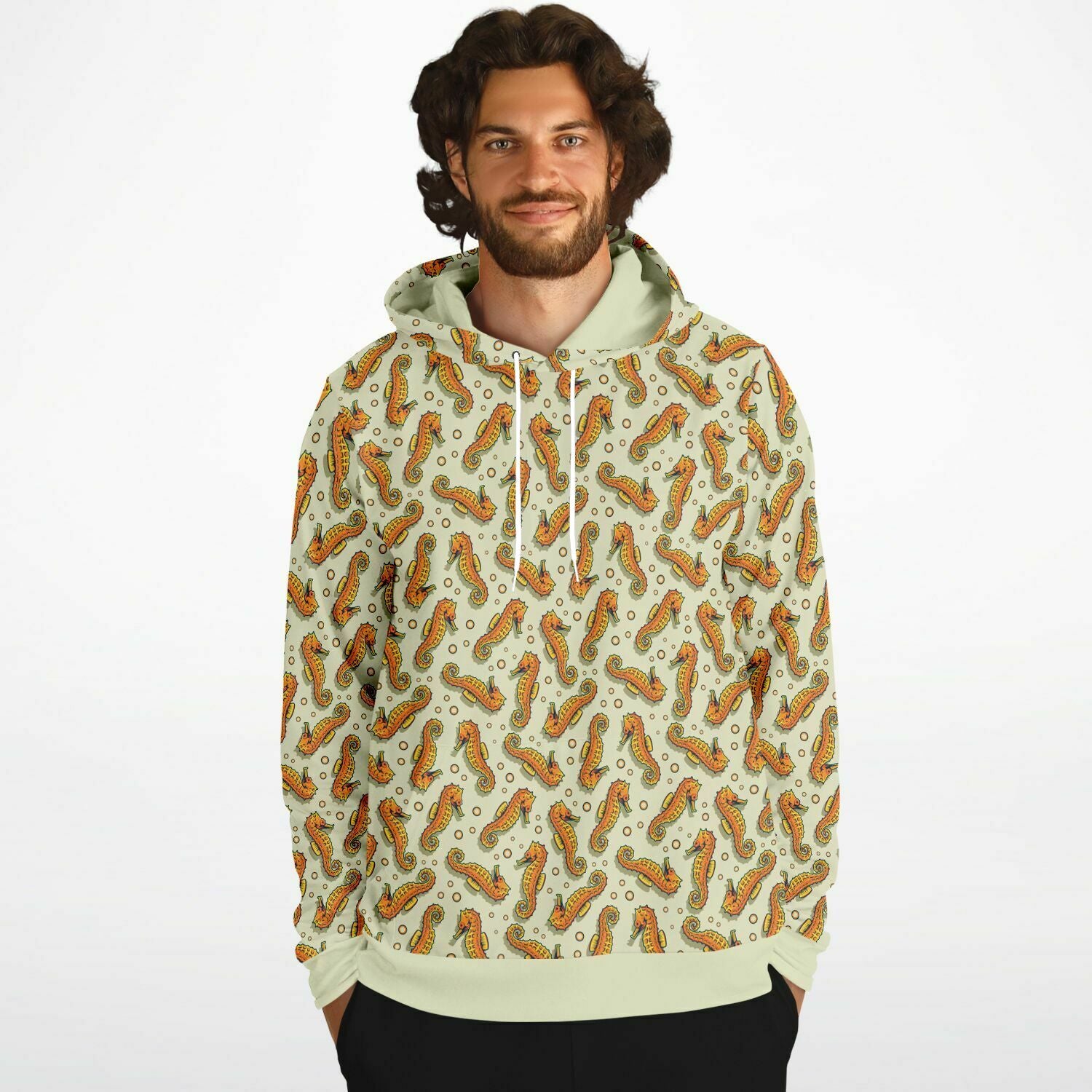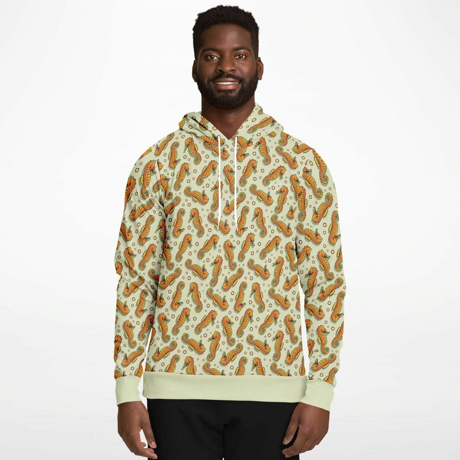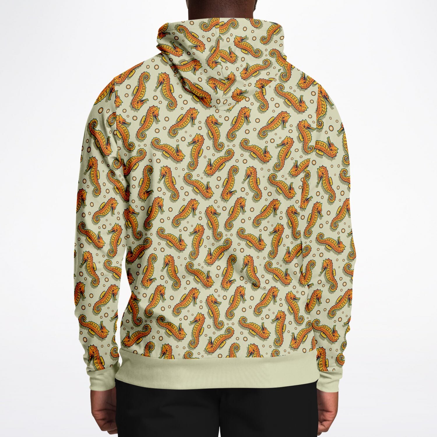 This sea horse hoodie is crafted from a premium polyester and spandex blend, making it both comfortable and durable. Each panel is individually printed, cut and sewn to ensure a flawless graphic with no imperfections. And high-definition printing makes these a pleasure to wear for all occasions. 🔴⚪🤿