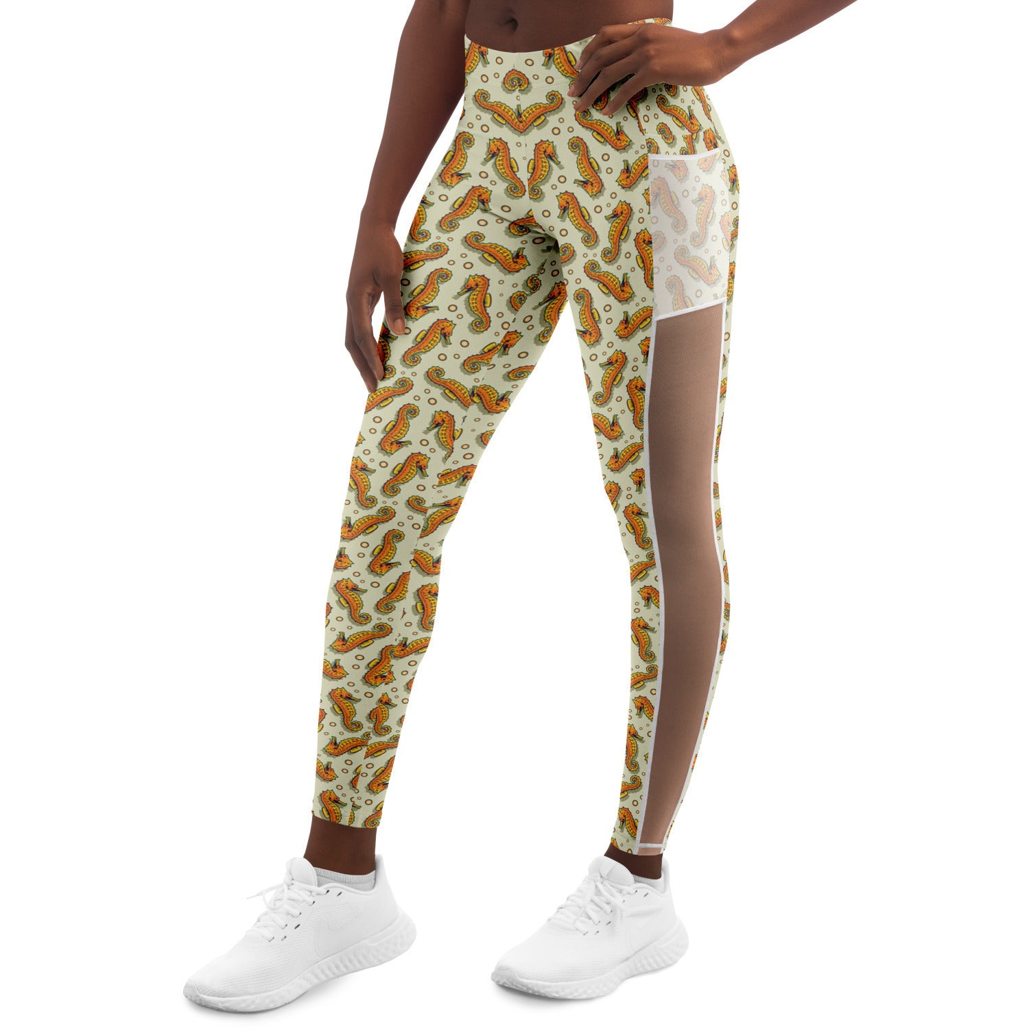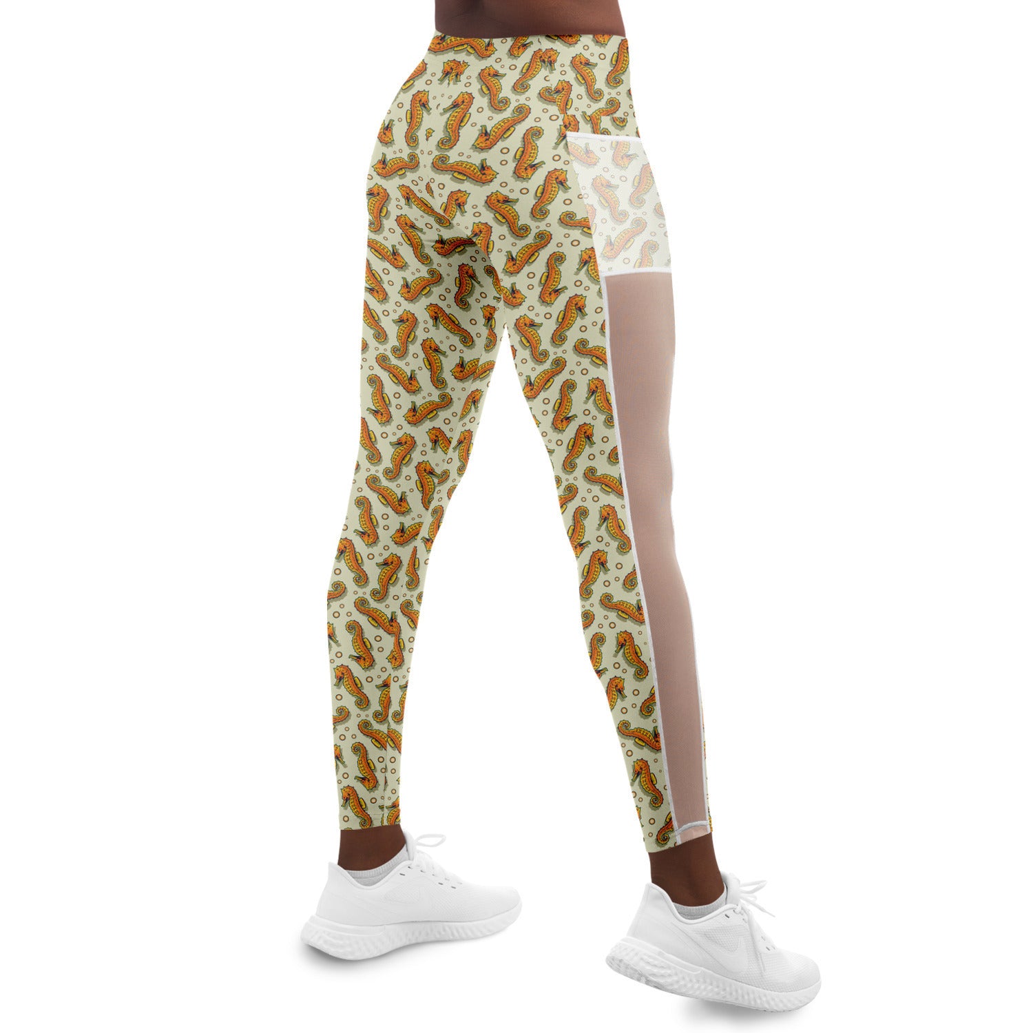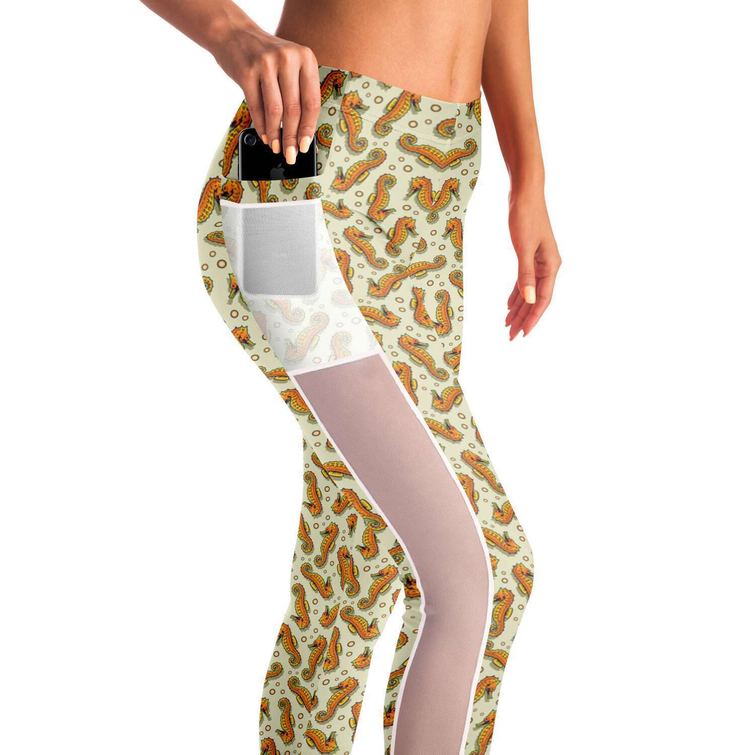 Do you love seahorses? 🟠⚪ Be ready at all times with this "Mesh Pocket Legging" that lets you hold your phone when you're on the go. They also come with mesh panels on the side for extra comfort. Crafted from a premium polyester and spandex blend, making them perfect for moments when both style and functionality matter. Our extra soft microfiber fabric with advanced four-way stretch make these a pleasure to wear for all occasions