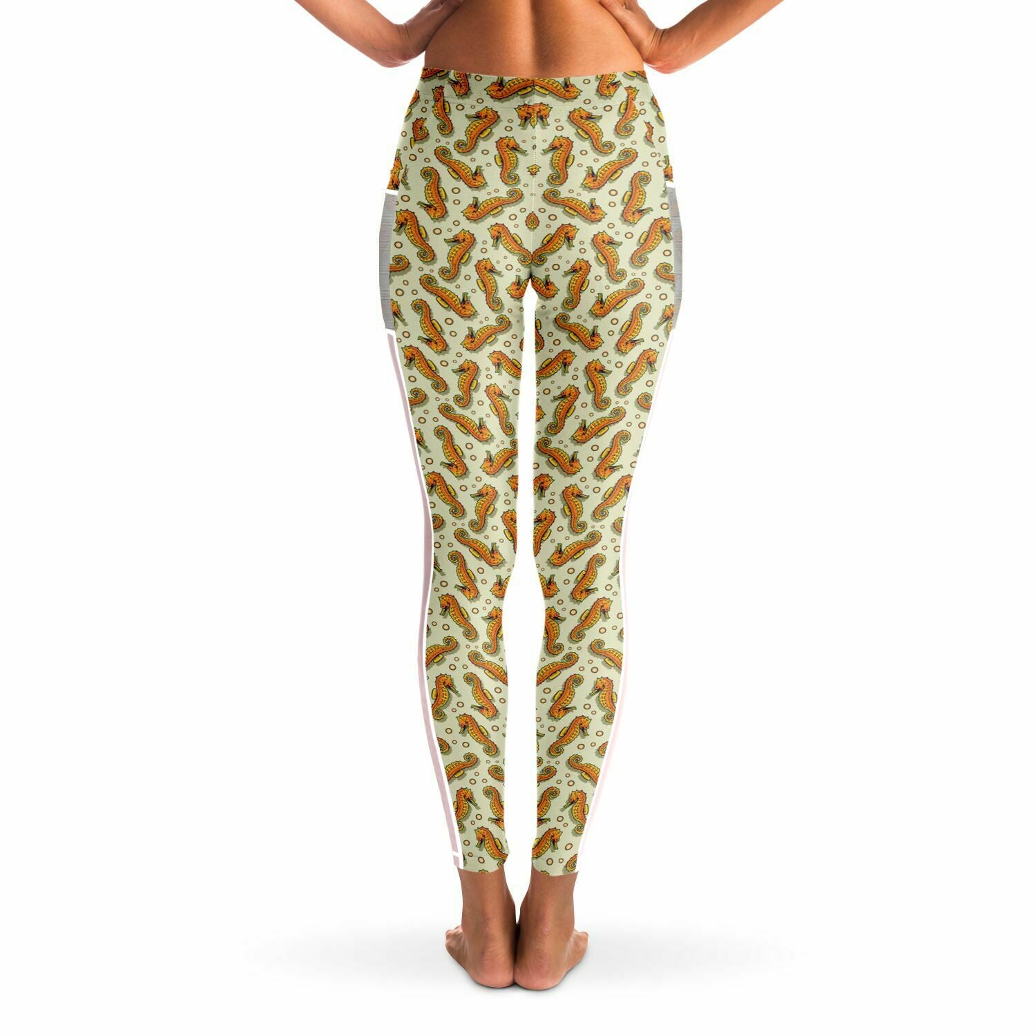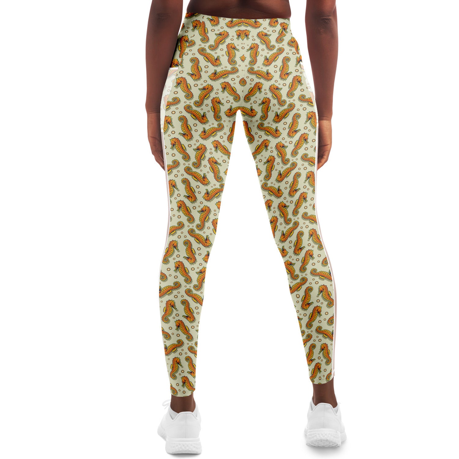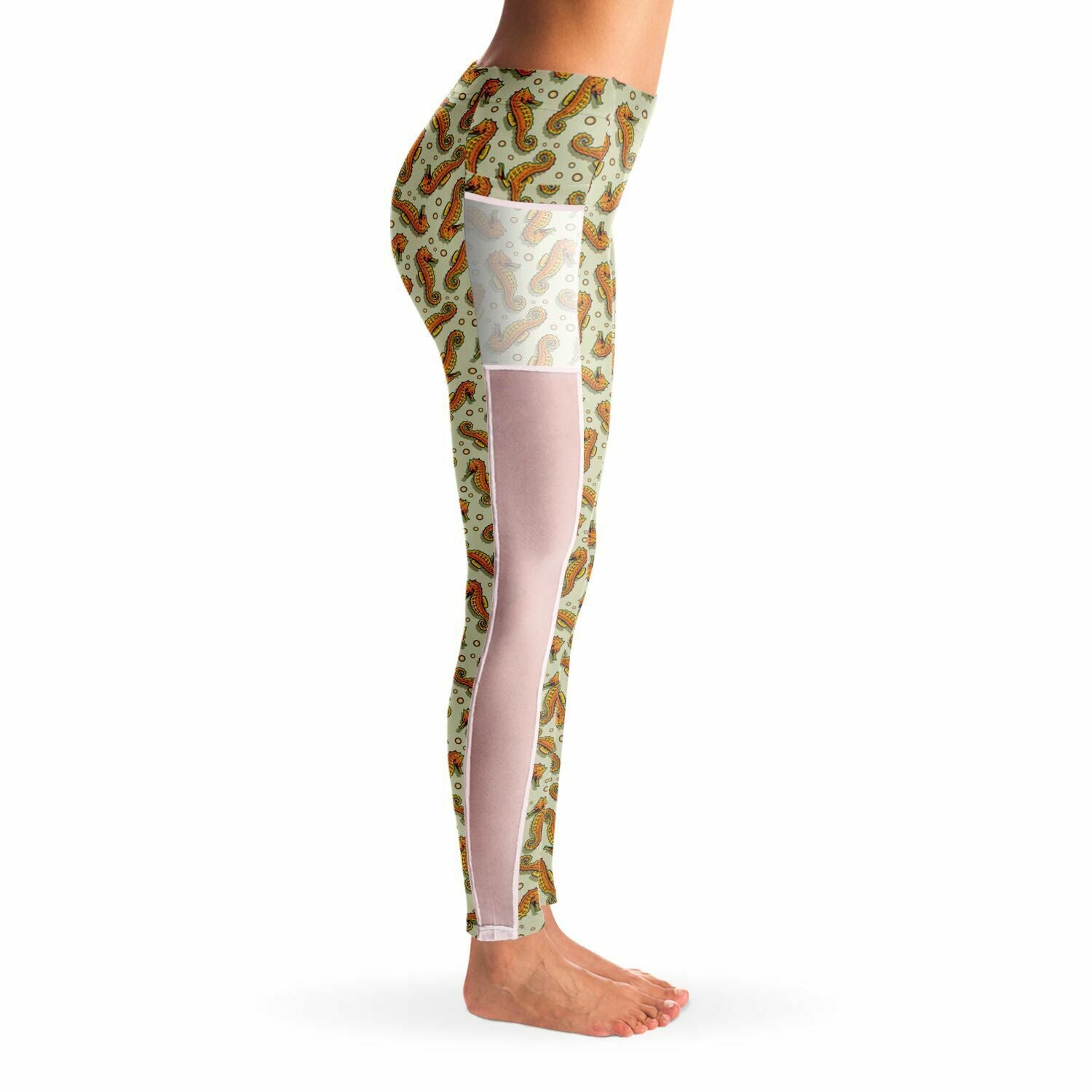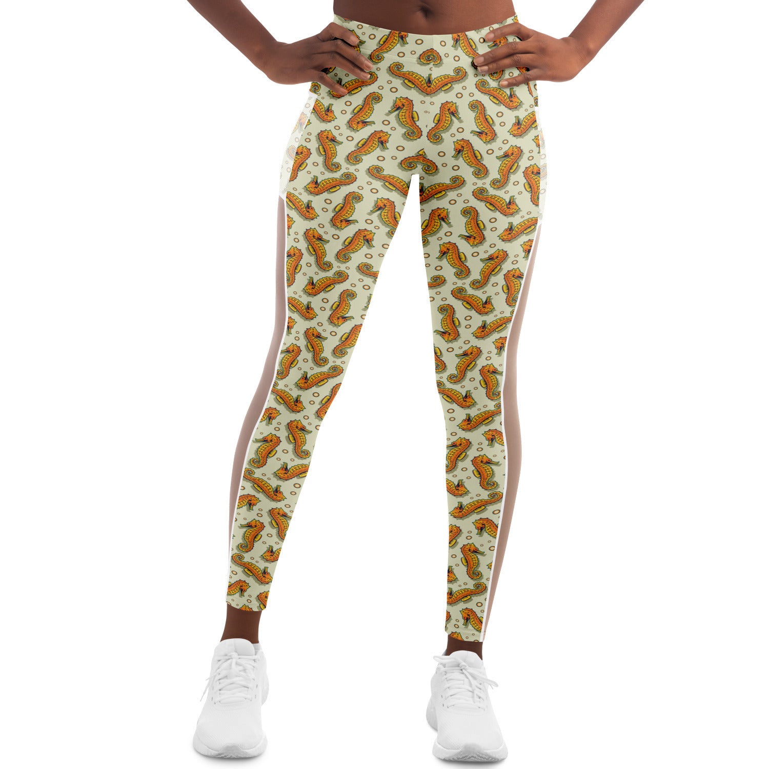 Do you love seahorses? 🟠⚪ Be ready at all times with this "Mesh Pocket Legging" that lets you hold your phone when you're on the go. They also come with mesh panels on the side for extra comfort. Crafted from a premium polyester and spandex blend, making them perfect for moments when both style and functionality matter. Our extra soft microfiber fabric with advanced four-way stretch make these a pleasure to wear for all occasions