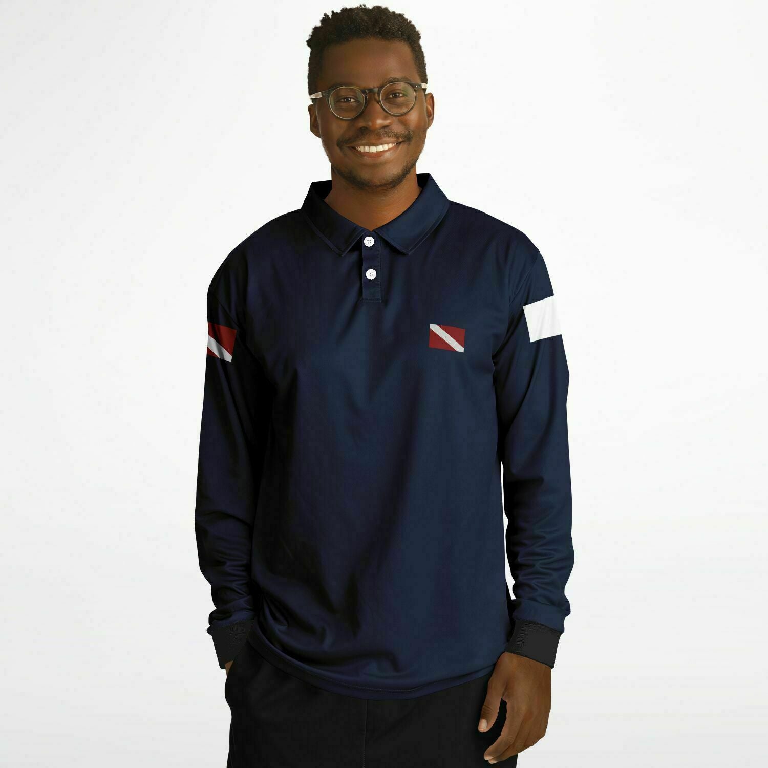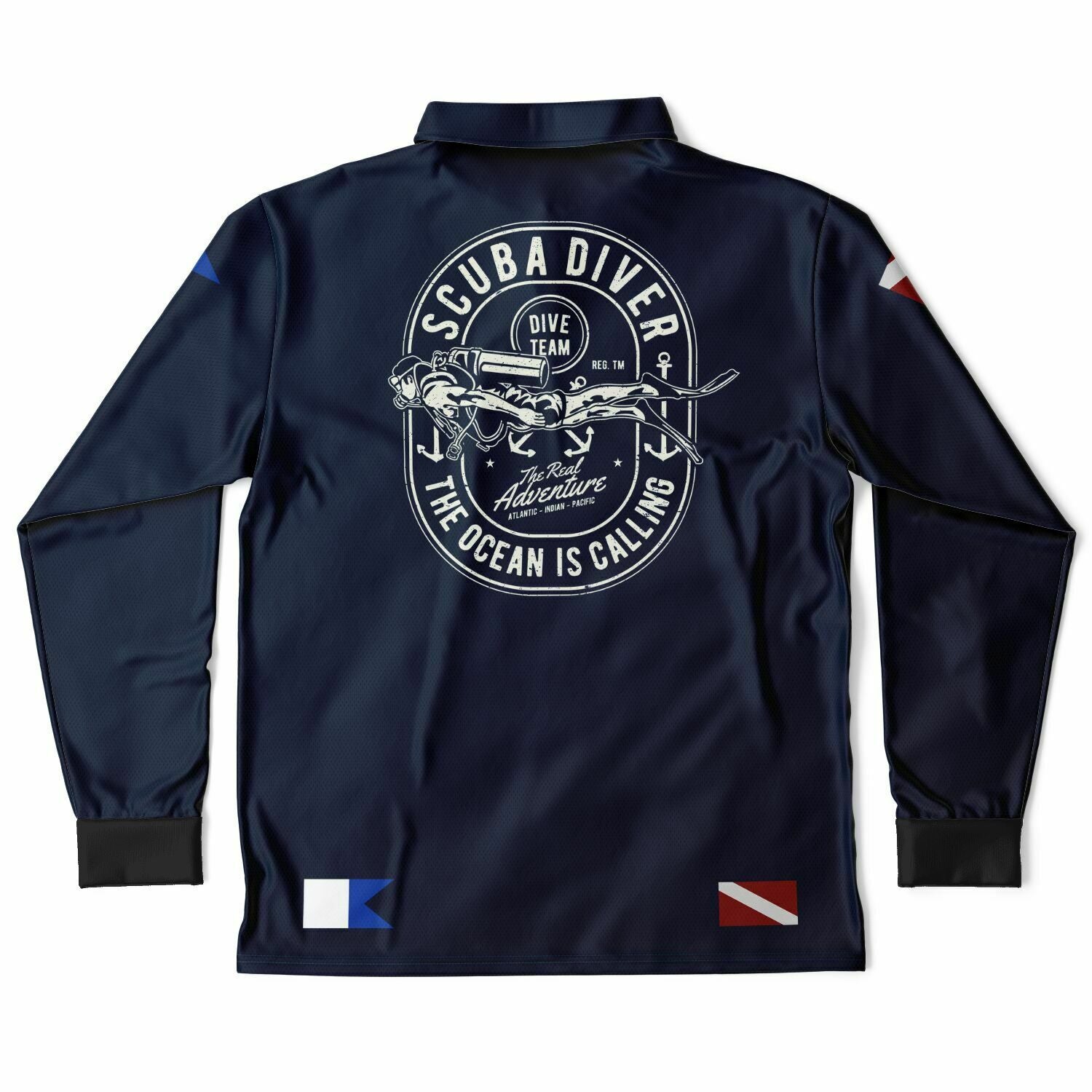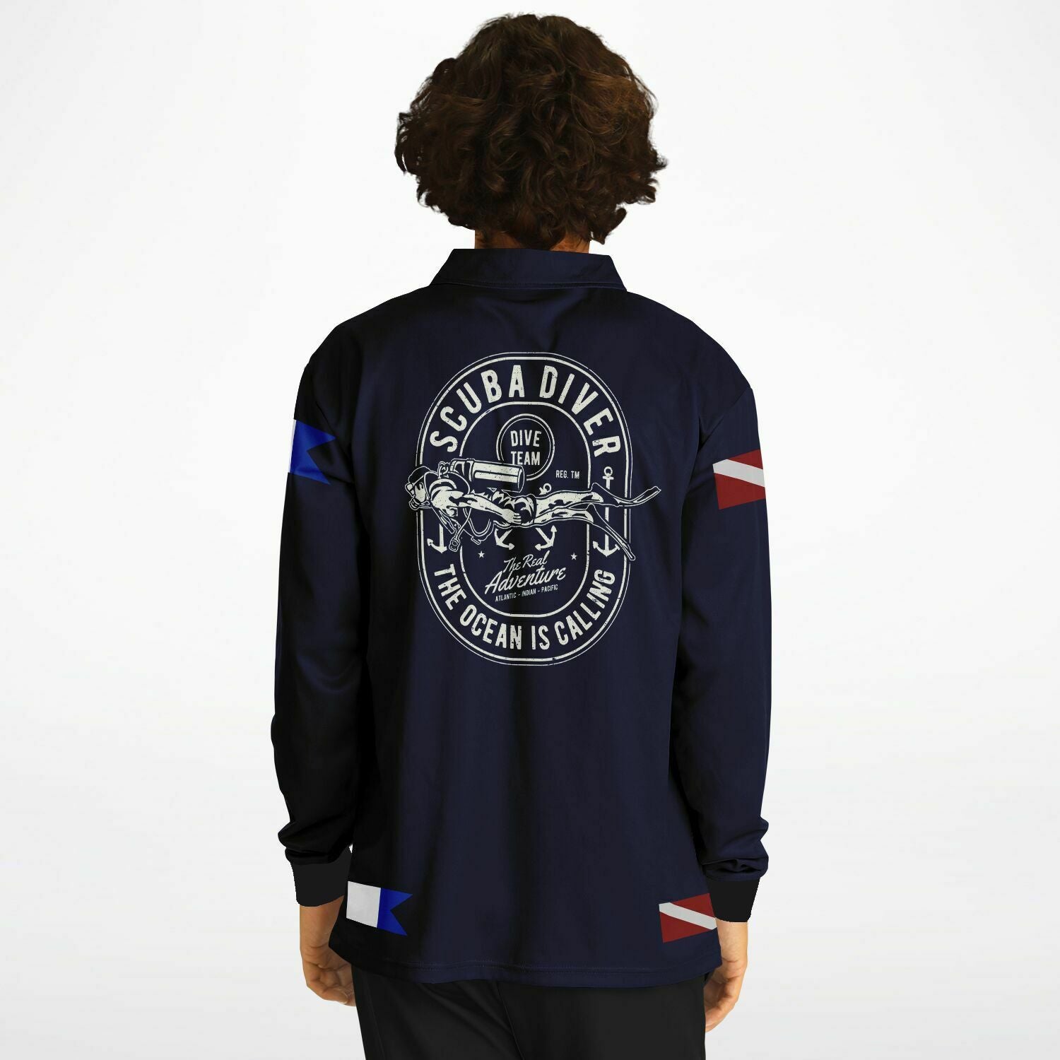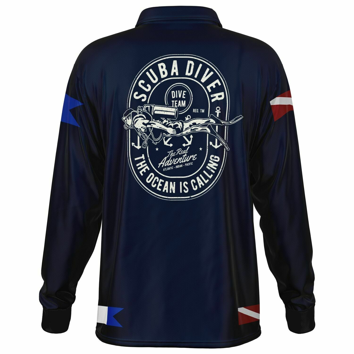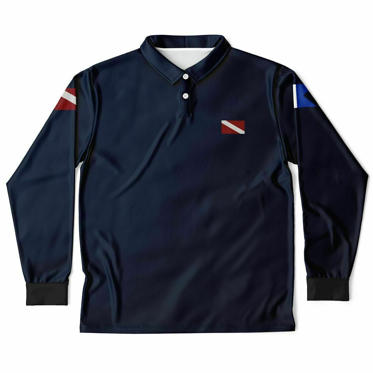 Need a functional Scuba Diver long sleeve polo shirt that still looks sharp and stylish? This polo shirt is what you need in your wardrobe! It’s perfect for outdoor adventures when you need to protect your skin from the sun’s harsh rays but it’s also suitable for indoor use during cooler months.