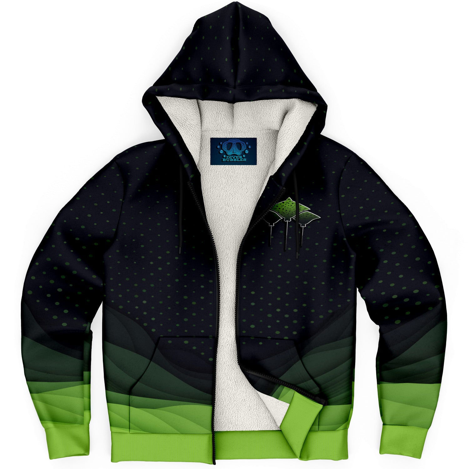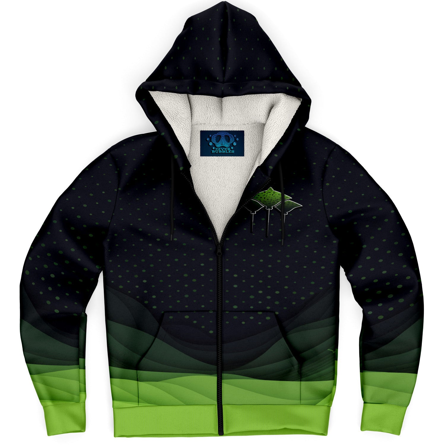 Heyyy do you like diving with Stingrays?? These beautiful rays were once very misunderstood creatures. It makes sense, they are incredibly large and a little scary looking (devil horns and all), but these fears were without merit. We love them that's why we like to "wear them"👌🤿This microfleece zip-up hoodie features a soft and durable fabric. The microfleece lining on the inside will make this your most comfy zip-up hoodie ever! It also comes with a visible nylon zipper front closure. Each panel is individually printed, cut and sewn to ensure a flawless graphic with no imperfections.