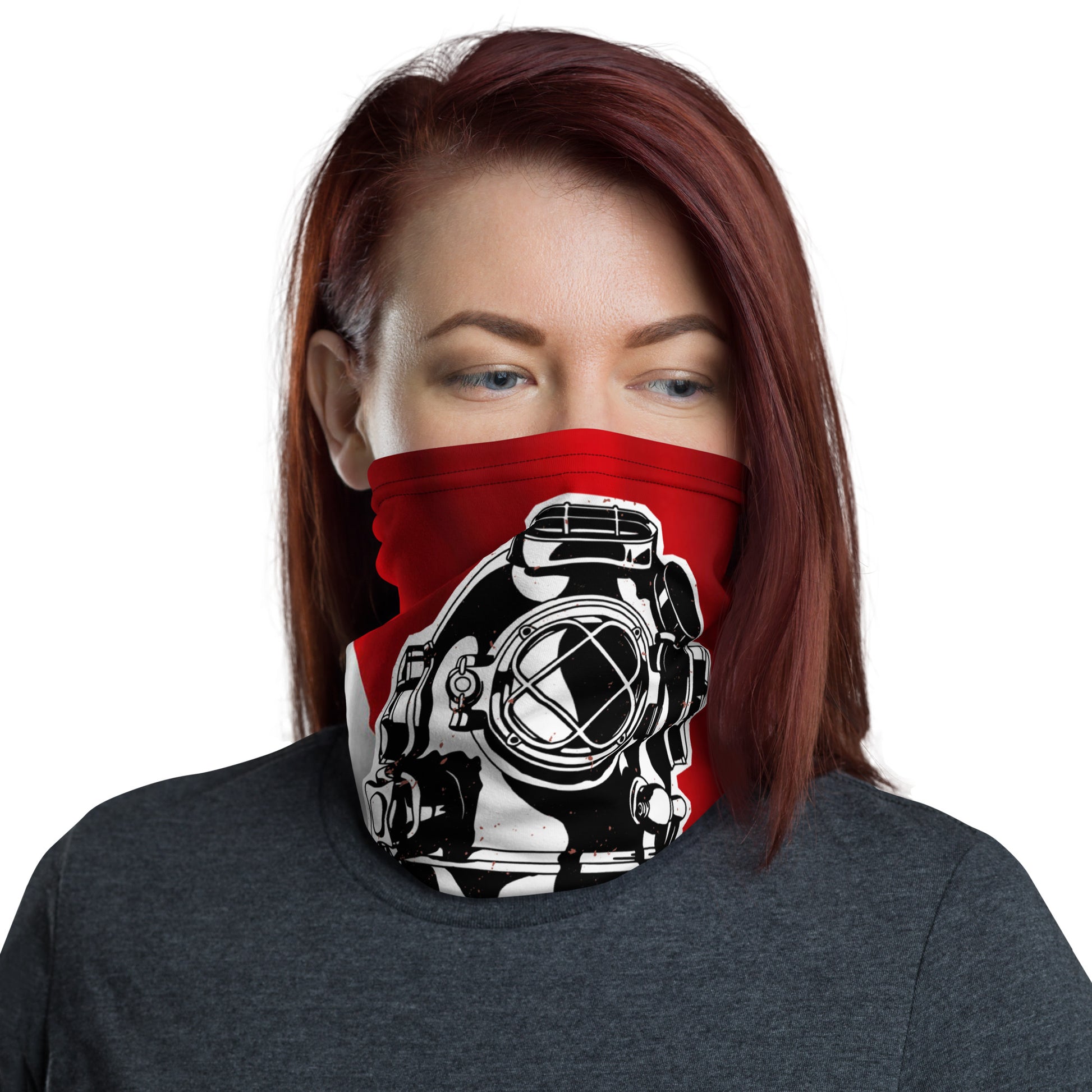 Deep Dive Neck Gaiter 🔴⚪This neck gaiter is a versatile accessory that can be used as a face covering, headband, bandana, wristband, and neck warmer after coming back from a diving session . Upgrade your accessory game and find a matching face shield for each of your outfits.👌🤿