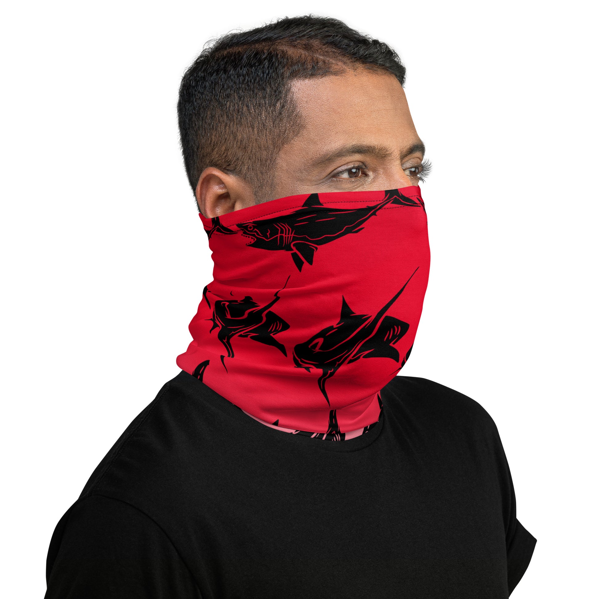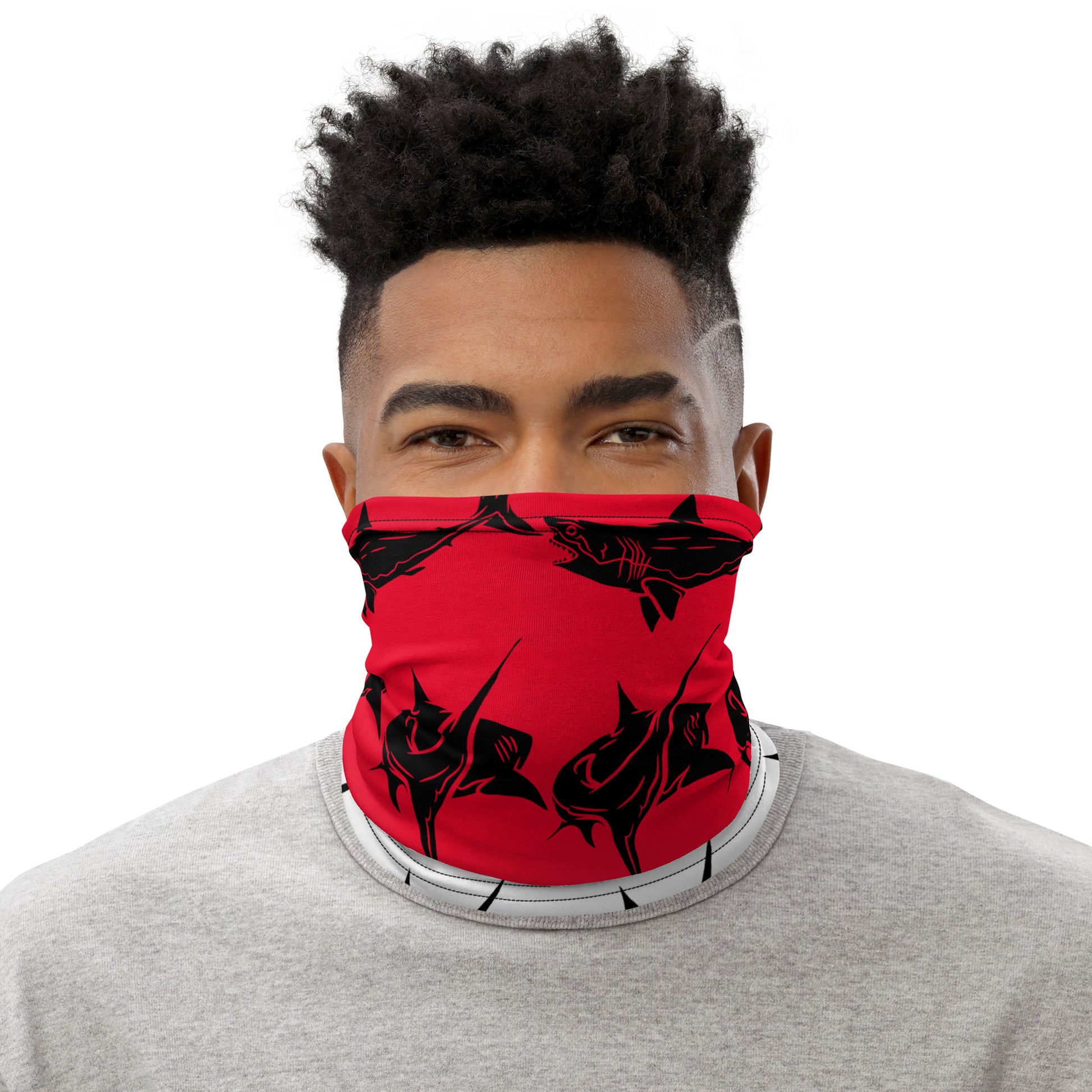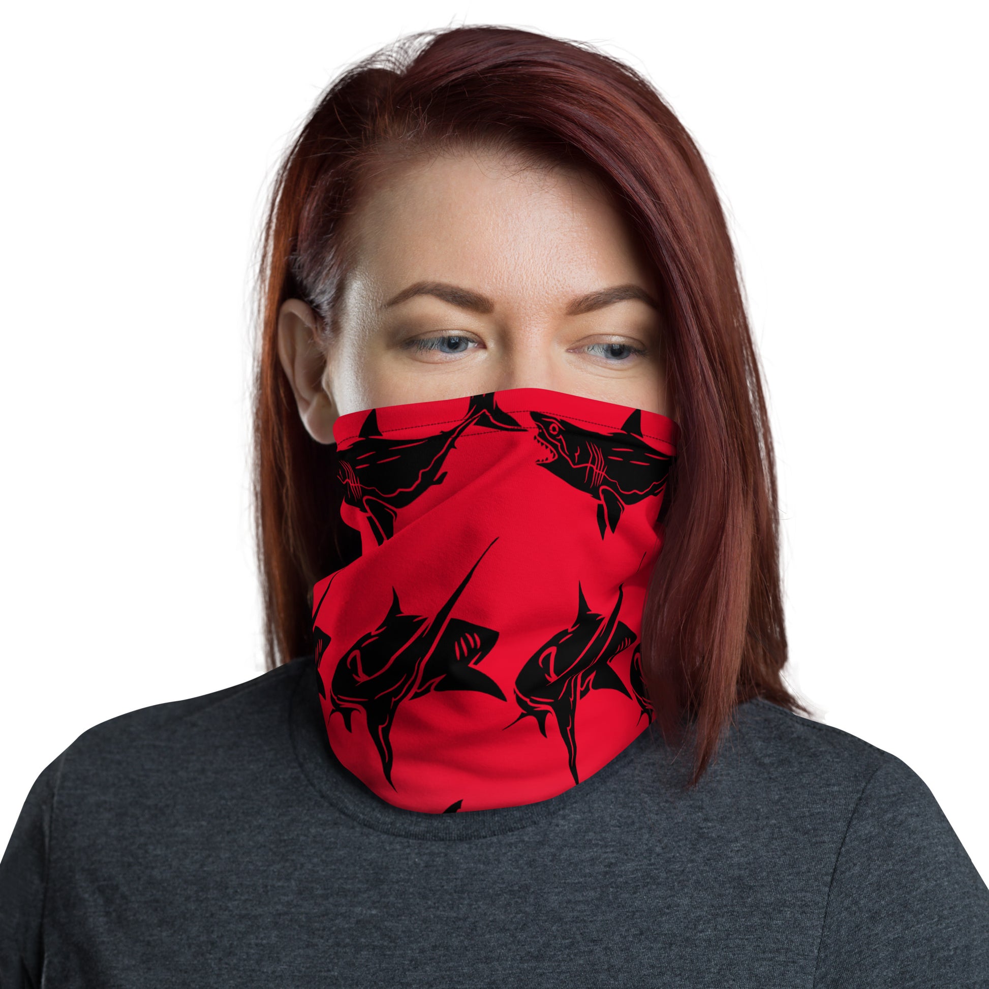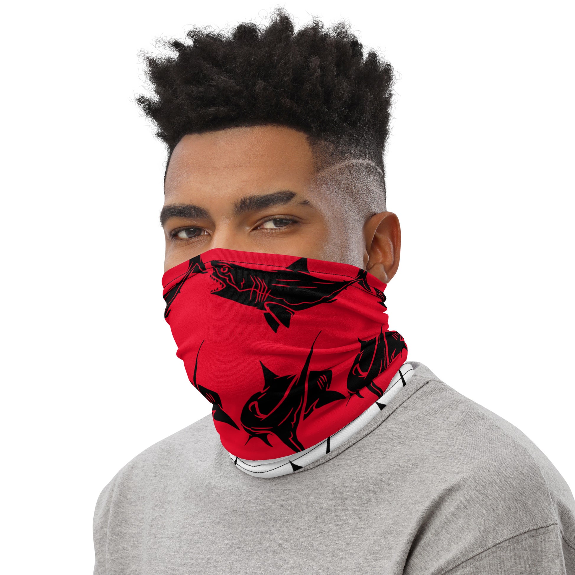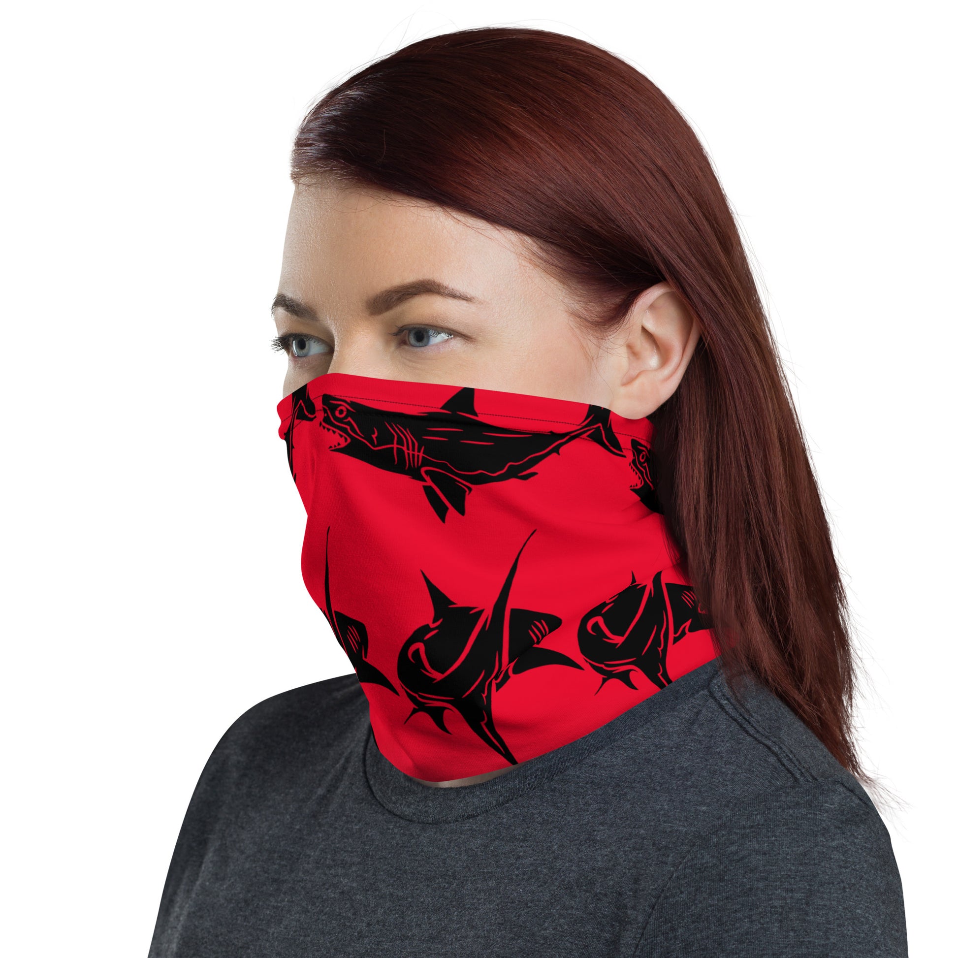 Shark Neck Gaiter. This neck gaiter is a versatile accessory that can be used as a face covering, headband, bandana, wristband, and neck warmer after coming back from a diving session . Upgrade your accessory game and find a matching face shield for each of your outfits.👌🤿Â