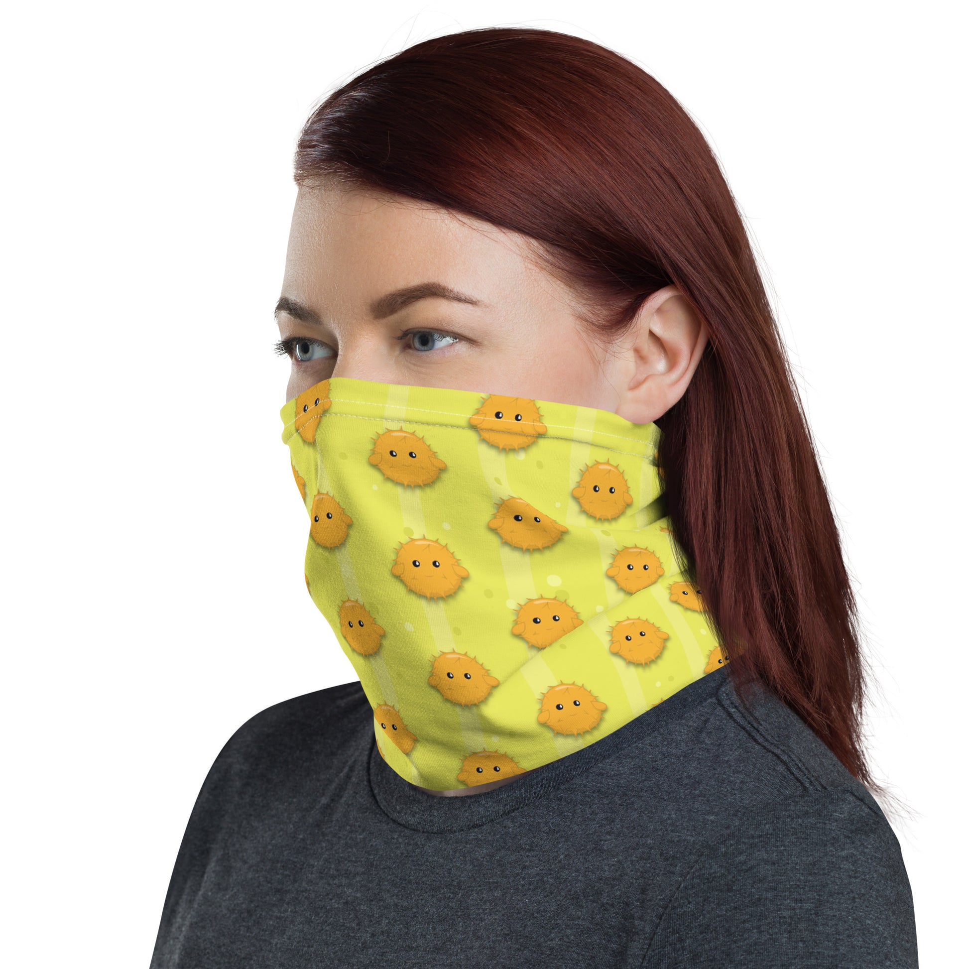 Puffer Fish Neck Gaiter. ⚪🟡  This neck gaiter is a versatile accessory that can be used as a face covering, headband, bandana, wristband, and neck warmer after coming back from a diving session . Upgrade your accessory game and find a matching face shield for each of your outfits.👌🤿