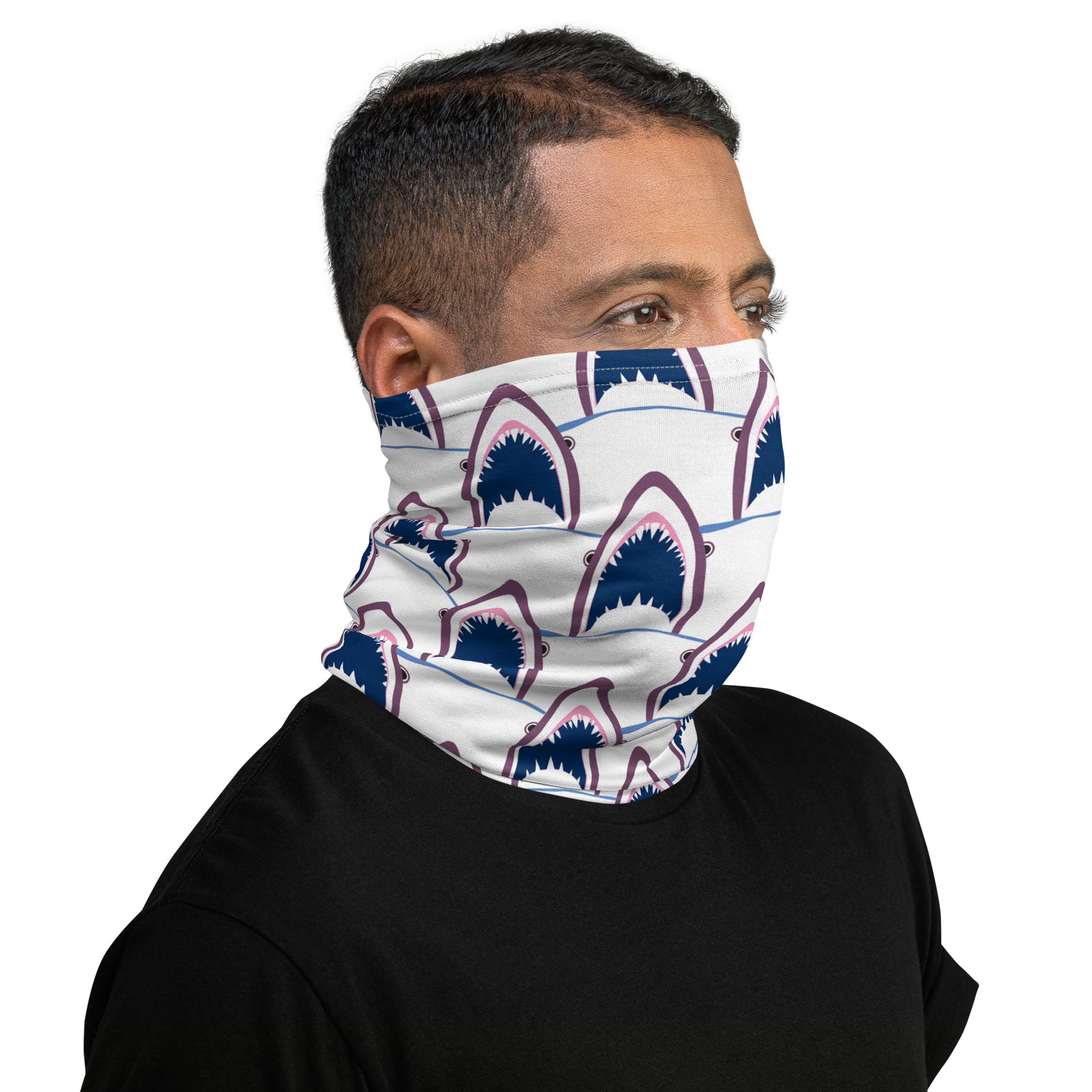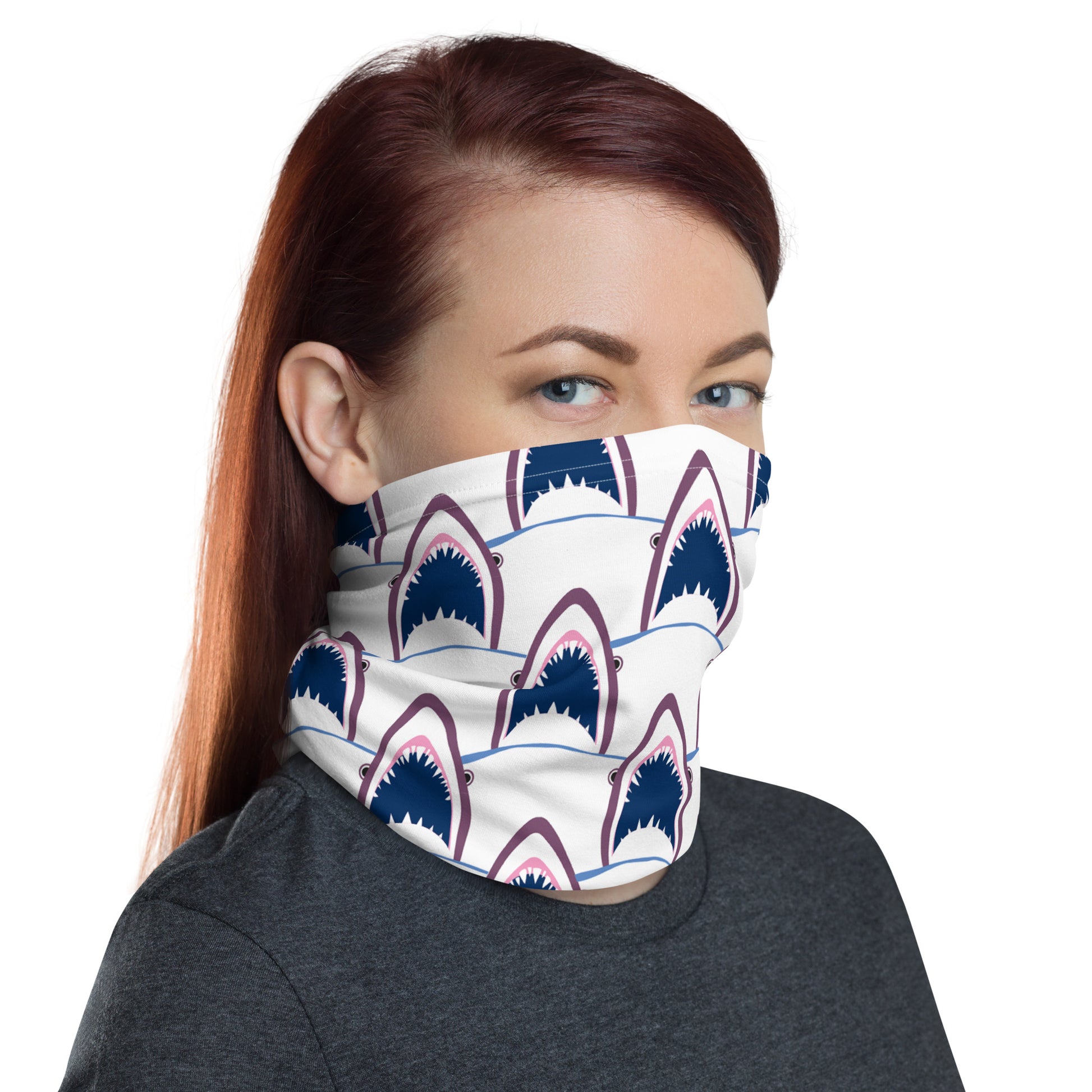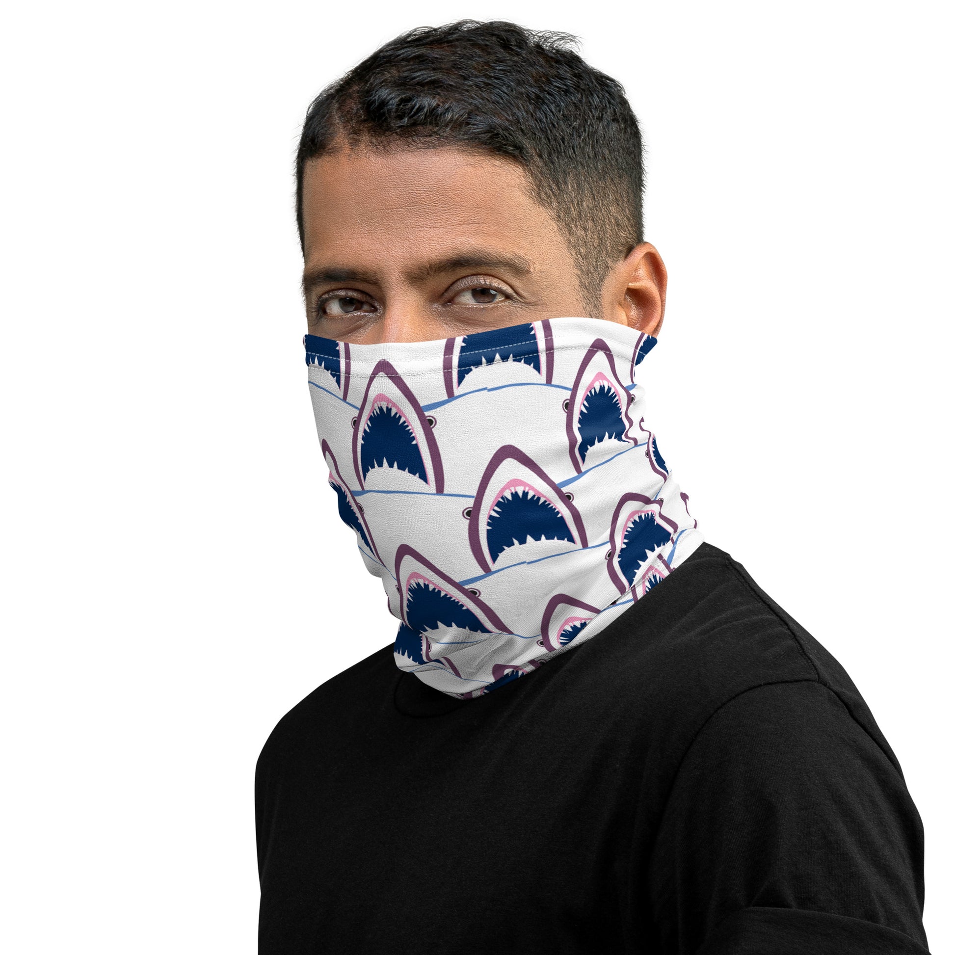 White Shark Neck Gaiter 🦈  This neck gaiter is a versatile accessory that can be used as a face covering, headband, bandana, wristband, and neck warmer after coming back from a diving session . Upgrade your accessory game and find a matching face shield for each of your outfits.👌🤿